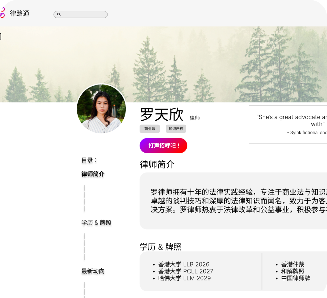 Be found for your practice area, qualifications, and experience with our Search function which incorporates AI to comprehensively analyze and understand your professional experiences.